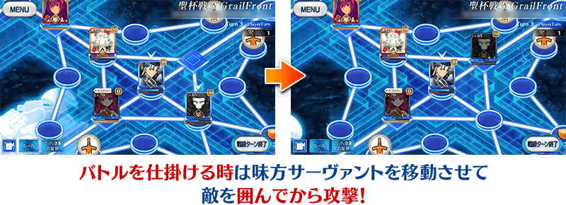 聖杯戦線では、マスを移動して敵に攻撃を仕掛けます。 通常のクエストとは内容が大きく異なるため、聖杯戦線における基本的な戦術をご紹介します。