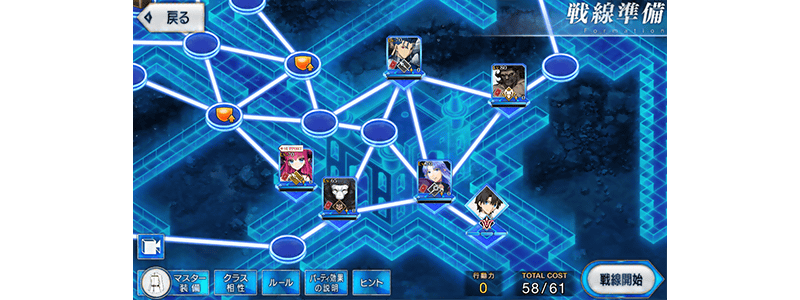 聖杯戦線ではクエストごとに出撃可能なクラスやTOTAL COSTが異なるため、出撃前の準備が重要です。「戦線準備」で編成を決定する際のポイントをご紹介します。