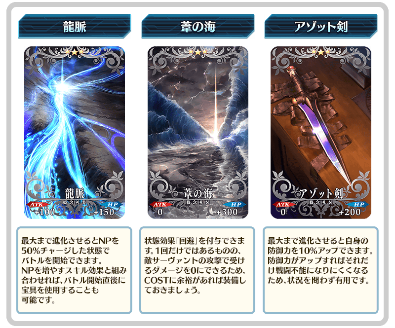 レアリティの高い概念礼装は効果が高いものが多く存在しますが、COSTが非常に高く、複数装備するとサーヴァントを出撃させるためのTOTAL COSTが大きく増加します。