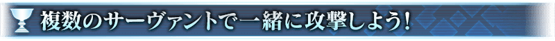 聖杯戦線ではバトルの参加サーヴァント数に応じてパーティ効果を得られるため、基本的に複数の味方サーヴァントで一緒に敵を攻撃する戦い方が有効です。