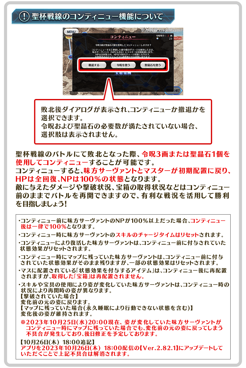 ※「戦線ターン終了」は行動できるサーヴァントやマスターが残っていてもおこなえます。