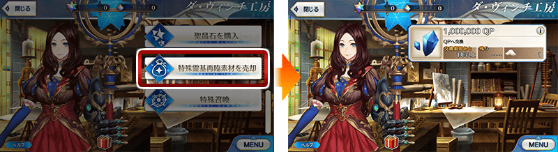 使用用途のなくなった特殊霊基再臨素材を売却できるようになりました。