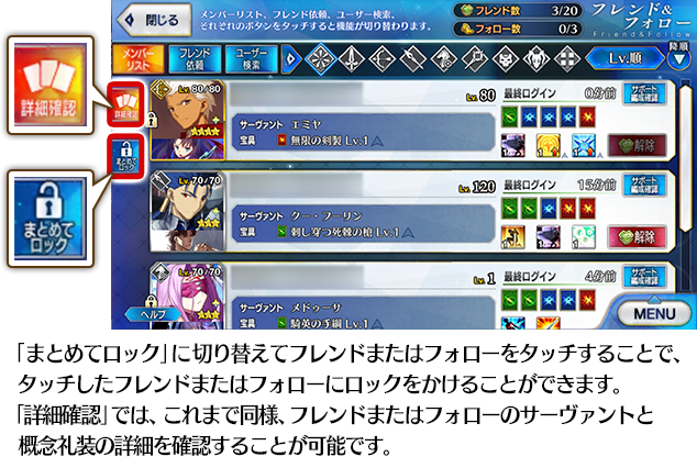 いつも力を貸してくれるフレンドやフォローを間違って解除しないように、ロック機能を活用しましょう。