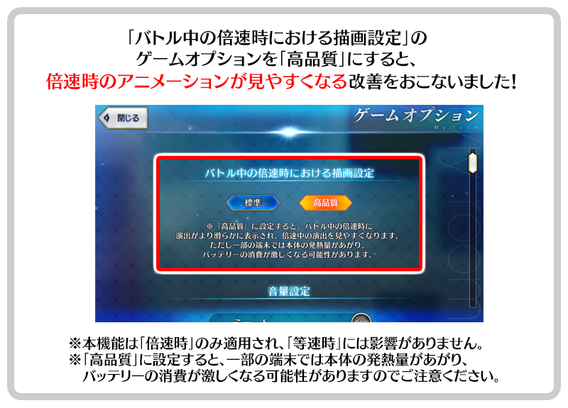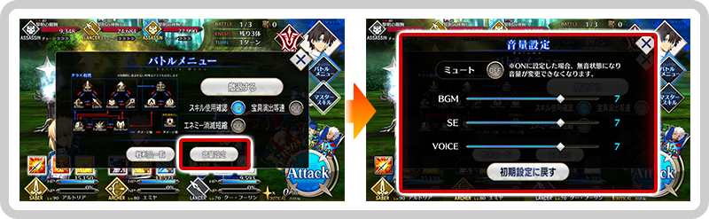 なお、変更した音量設定はバトル終了後も保持されます。BGMやサーヴァントのVOICEを、お好きな音量でお楽しみください!