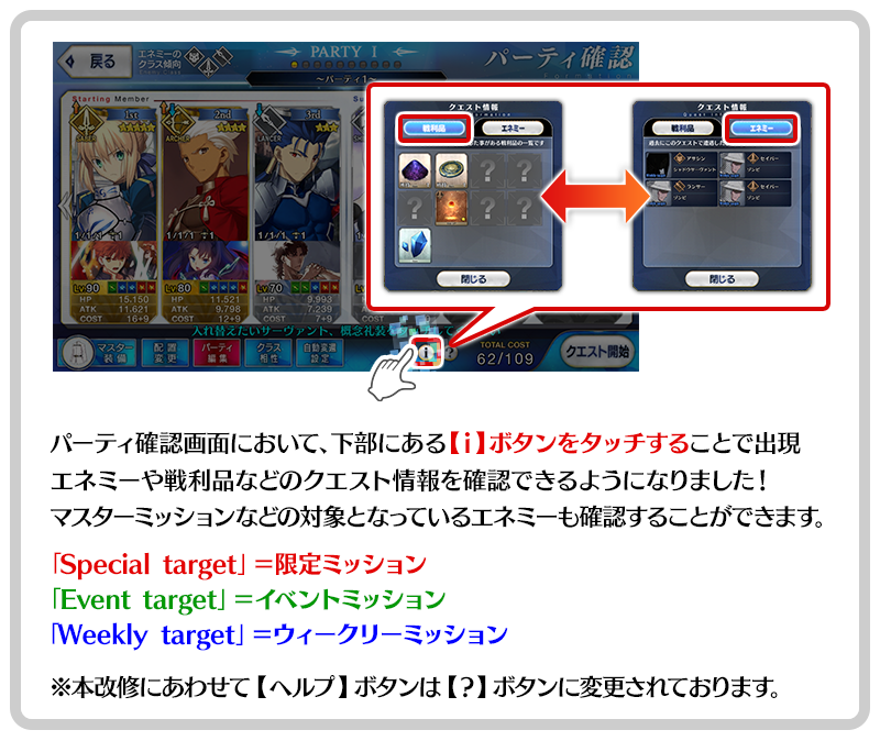 ◆パーティ確認画面におけるクエスト情報の表示について◆