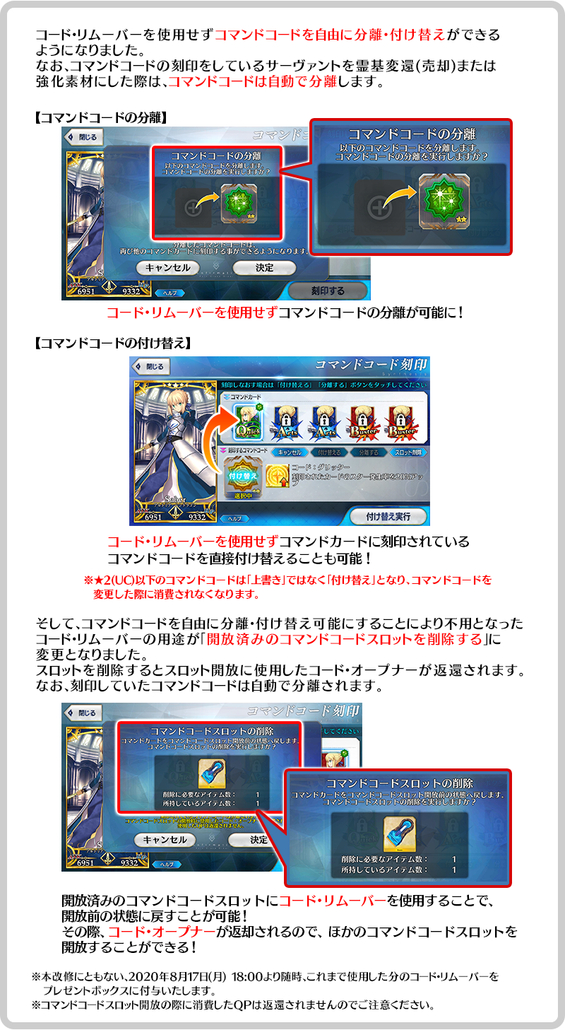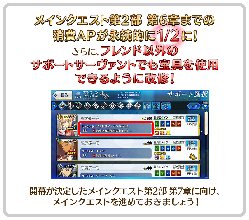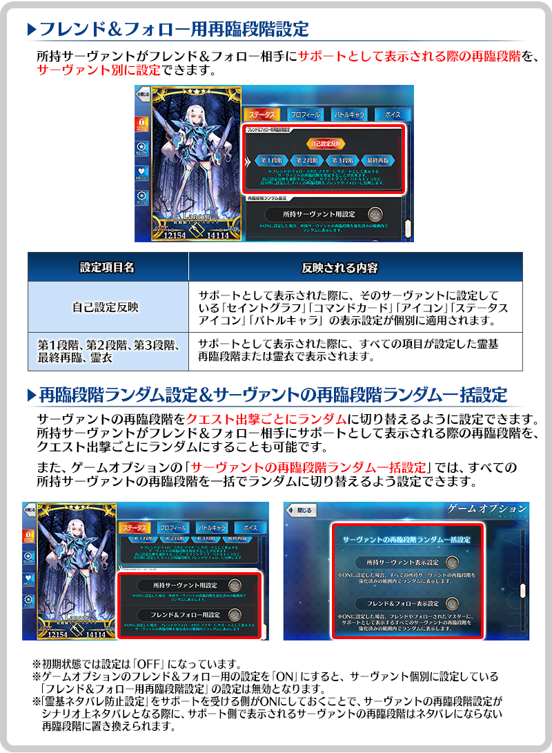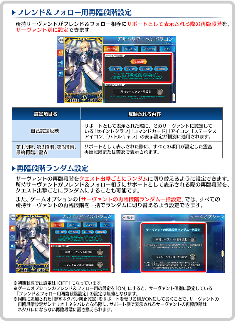 ◆「サポートサーヴァントの再臨状態設定の反映」の改修について◆