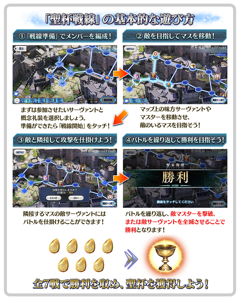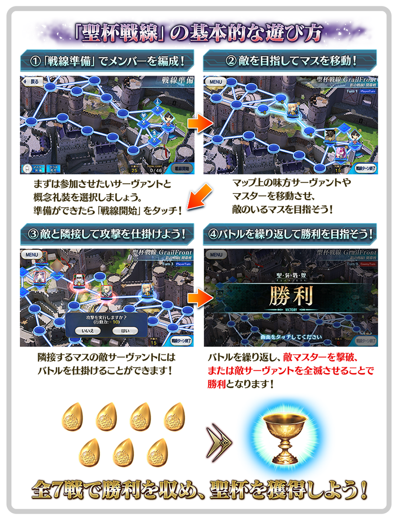 「冠位戴冠戦」をクリアしていくことで、グランドサーヴァントの選定やグランドスコアの開放など、よりサーヴァントを強化することができます。