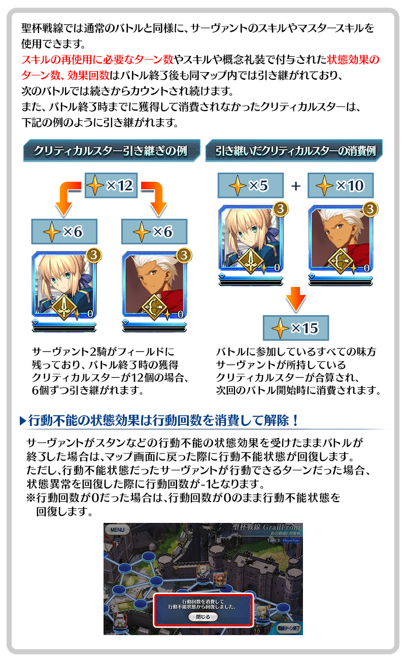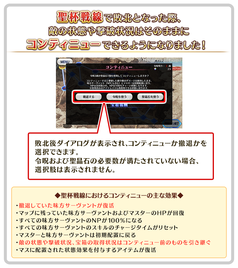 キャンペーンで入手できる「霊脈石」は、第1部から第2部のメインクエストでのバトル敗北時に使用可能で、令呪3画や聖晶石を消費することなく復帰することができます。