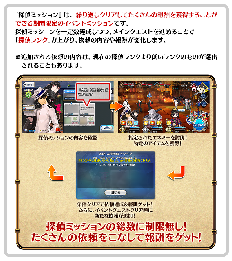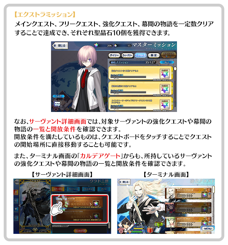 ミッションをクリアしてお気に入りのサーヴァントを強化しましょう!