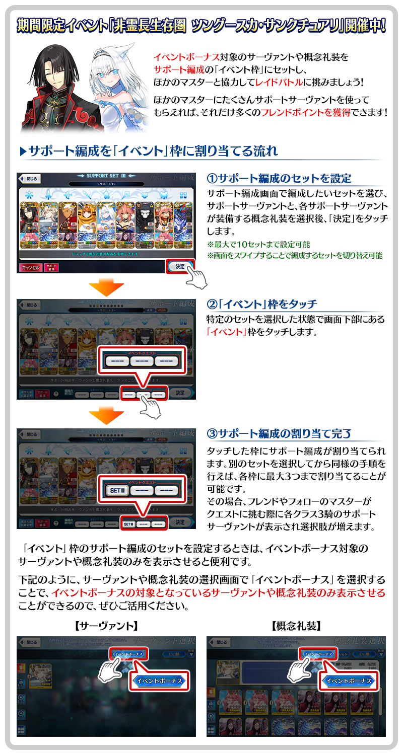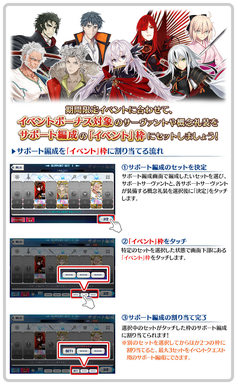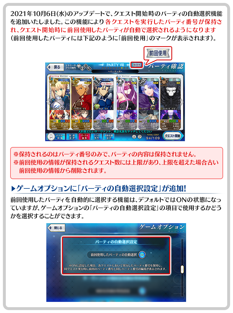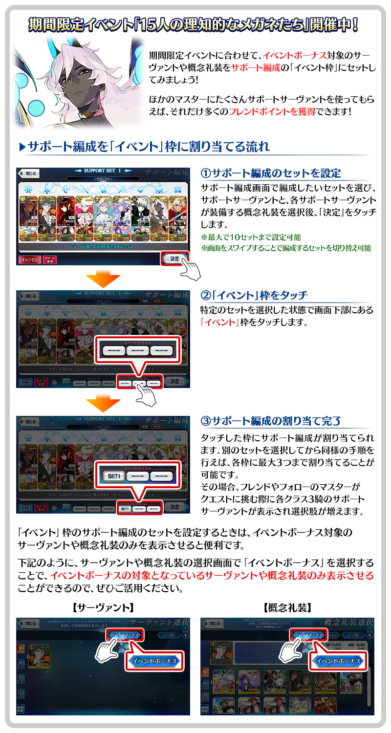 イベント攻略中、概念礼装だけを変更したパーティを編成したいときなどにご活用ください!