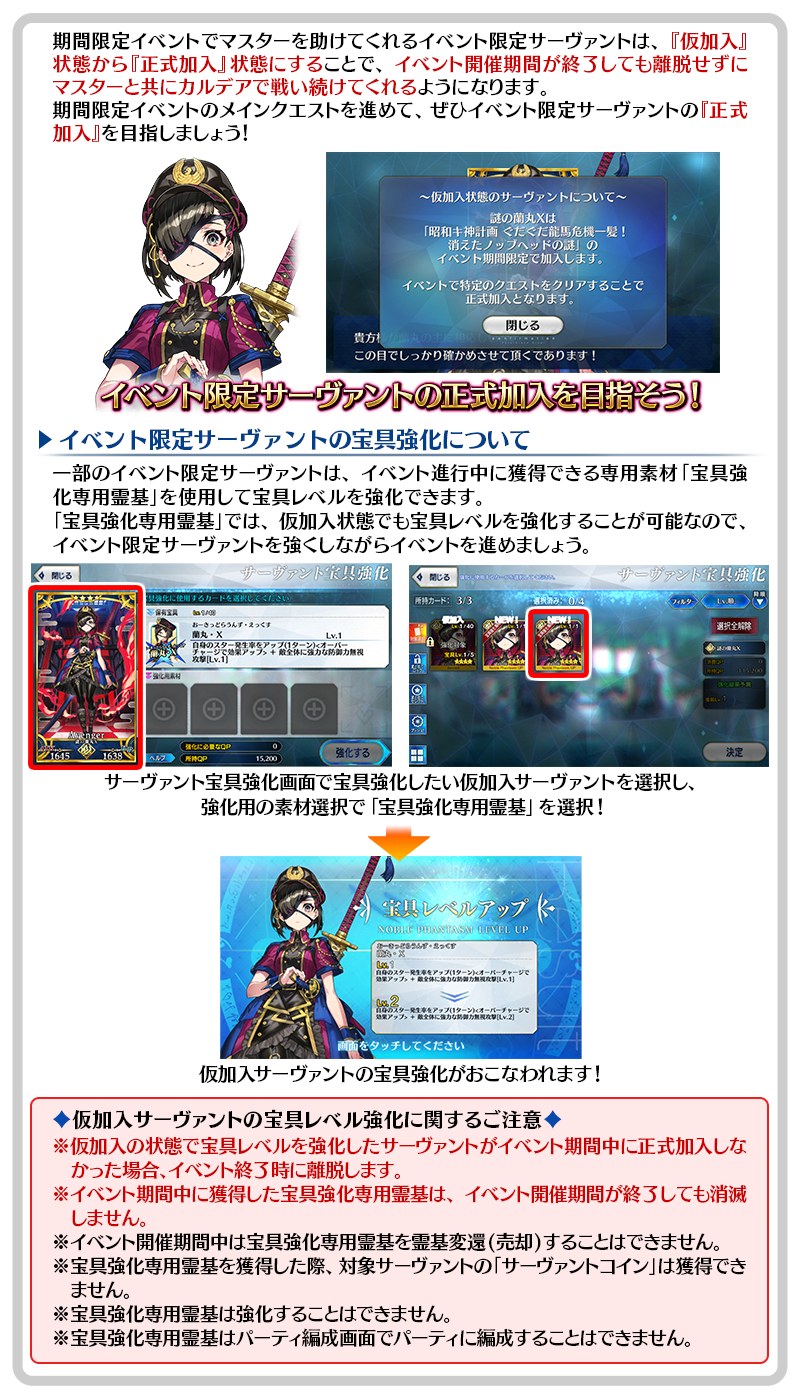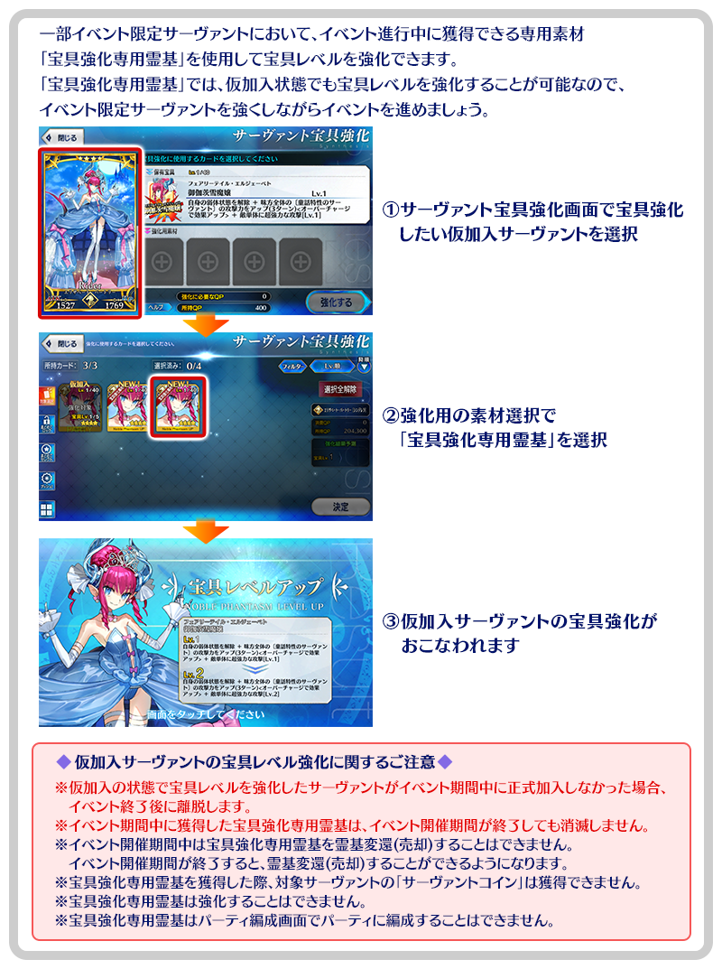 イベント限定サーヴァントなどを、まとめて宝具レベルを強化する際にご活用ください。