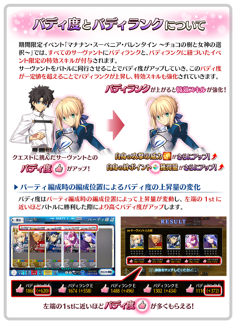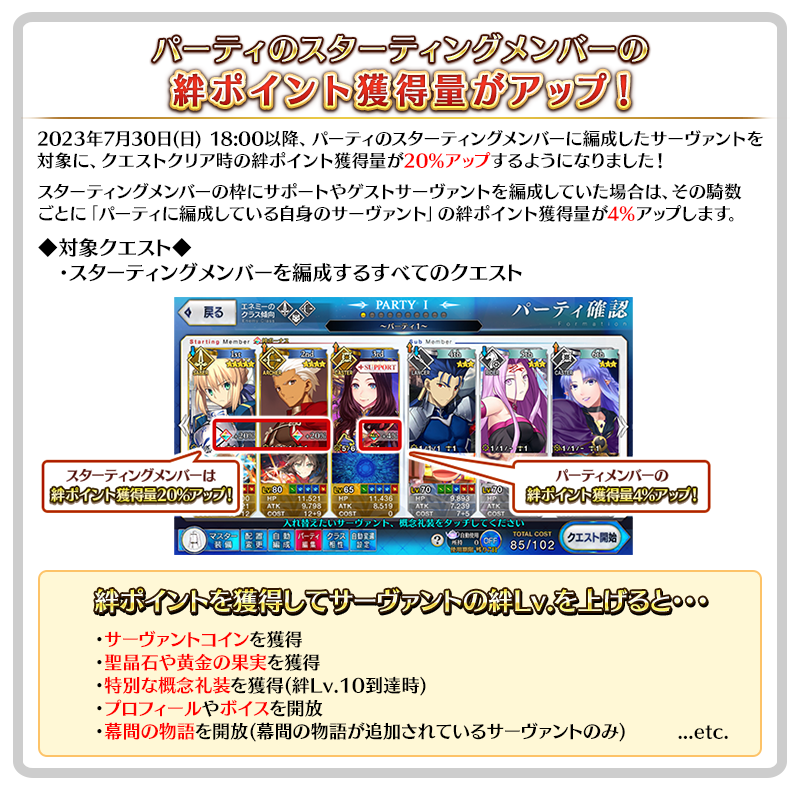 パーティ編成中のサーヴァントは、クエストクリア時に絆が増加します。