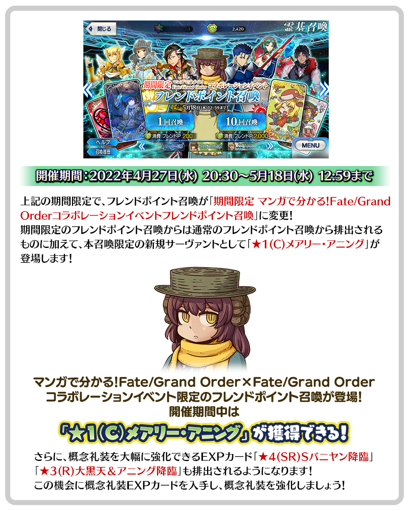 現在開催中のイベントを進める際にも有用なので、サポート用のサーヴァントに装備しているフレンドなどがいれば活用してみましょう。