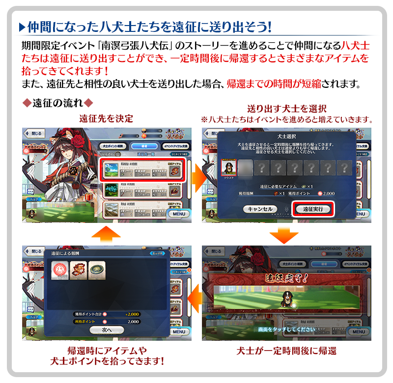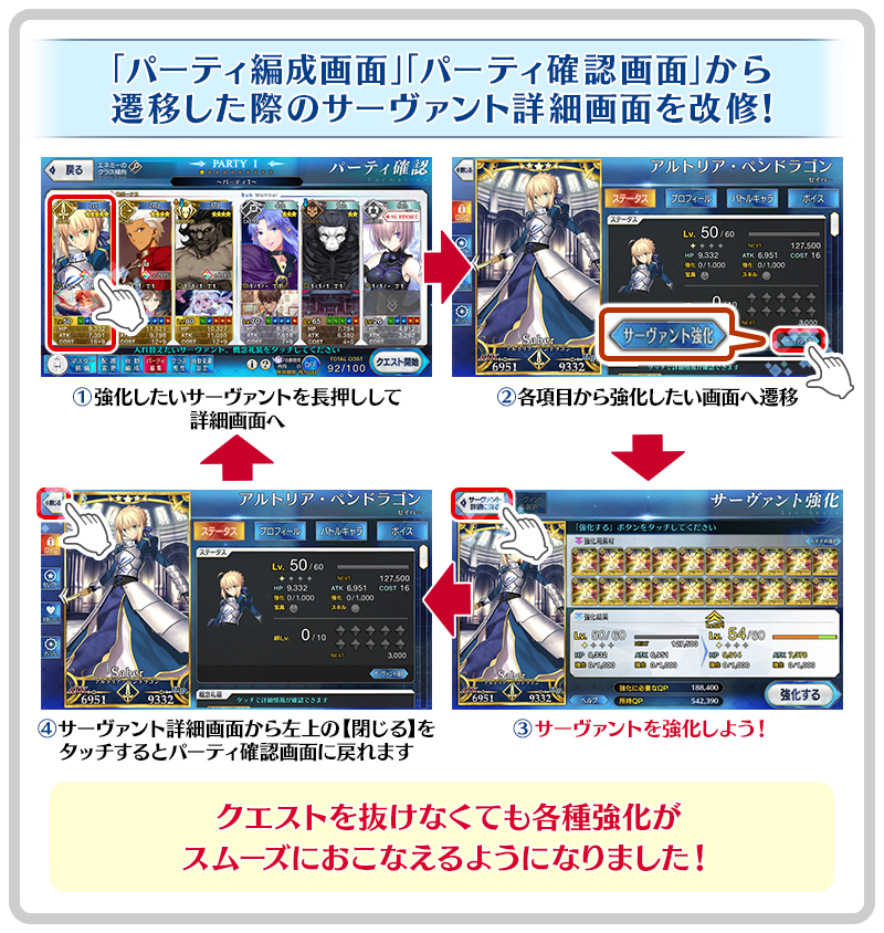 新たなサーヴァントを召喚したり、手に入れたアイテムを用いて召喚済みのサーヴァントを強化して、メインクエストを進めていきましょう!