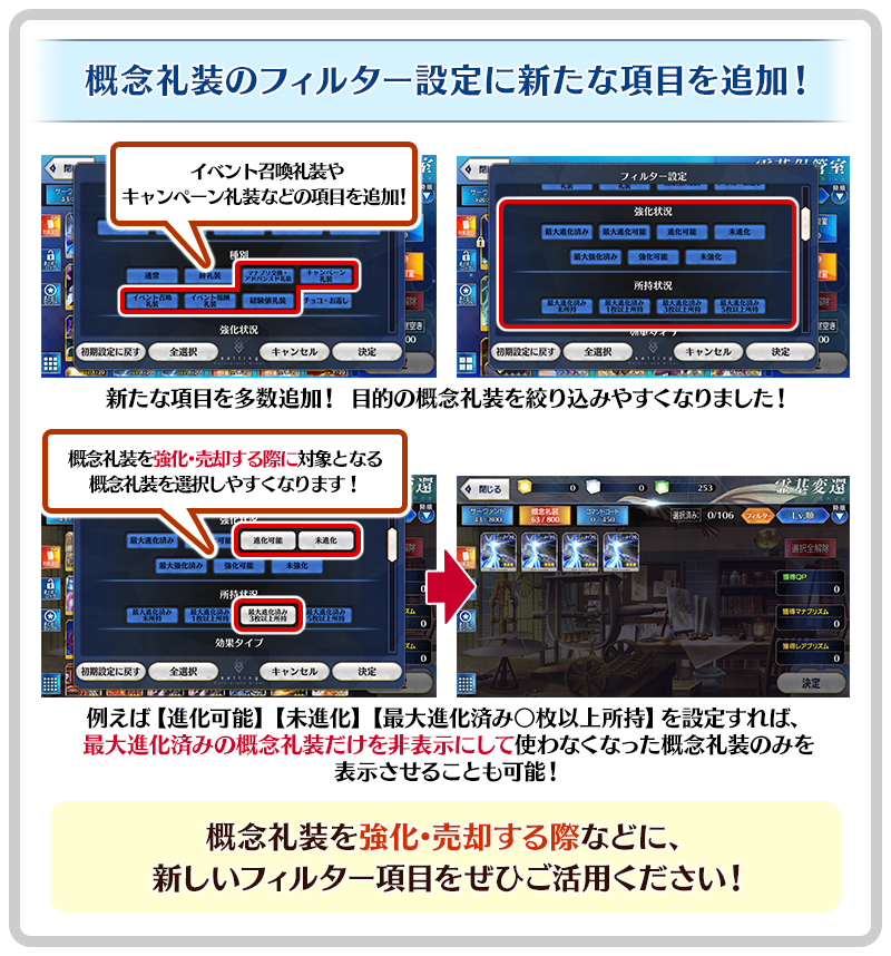 概念礼装強化画面に「強化素材」を一括で選択できる「おすすめ選択」ボタンが追加!
